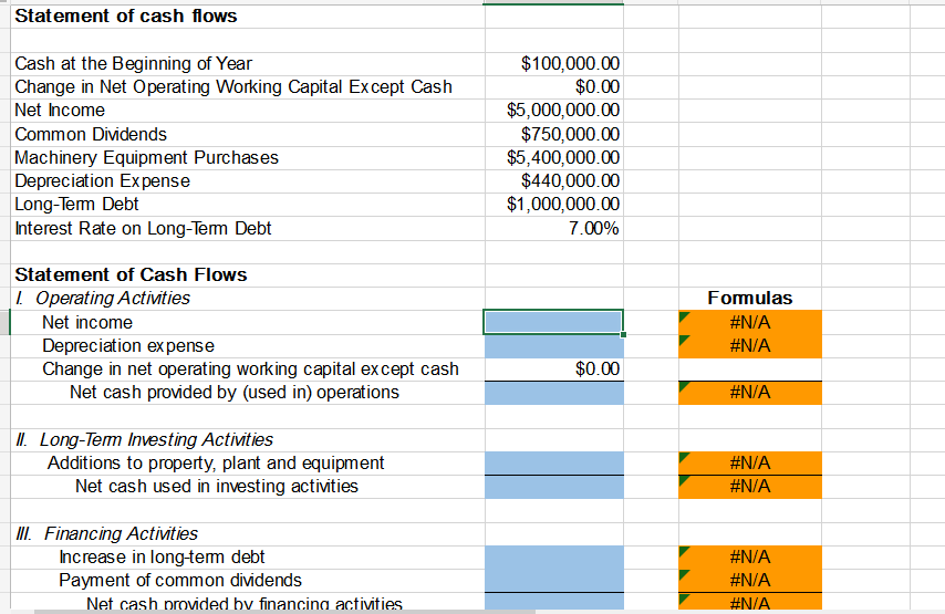 Solved Statement Of Cash Flows Cash At The Beginning Of Year Chegg Com